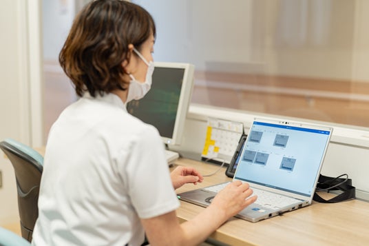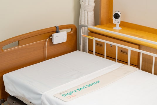 センサーをベッドに敷き、その上に対象者が寝ることで「就寝中・覚醒中・起床」などの状態とバイタルがわかります。それらの情報はパソコンやタブレットでいつでも見ることが可能です。対象者がベッドから起き上がった時はアラームでお知らせをするので、すぐに部屋に駆け付けることができ、転倒転落を予防できます。また、カメラがついていることで直接部屋に見に行かなくても様子を確認できるため、夜間の巡回負担を減らすことにもつながります。現在多くの病院・施設様でご利用いただいております。
