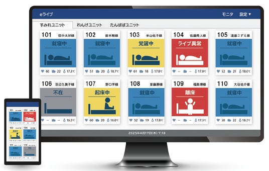 「eライブ」は、カメラと離床センサーで高齢者を見守ることで転倒転落事故を防ぎ、スタッフの負担を軽減することを目的とした製品です。リニューアルされた「eライブ」はH.C.R.2025にて初めてお披露目となり、2025年11月より販売を開始いたします。