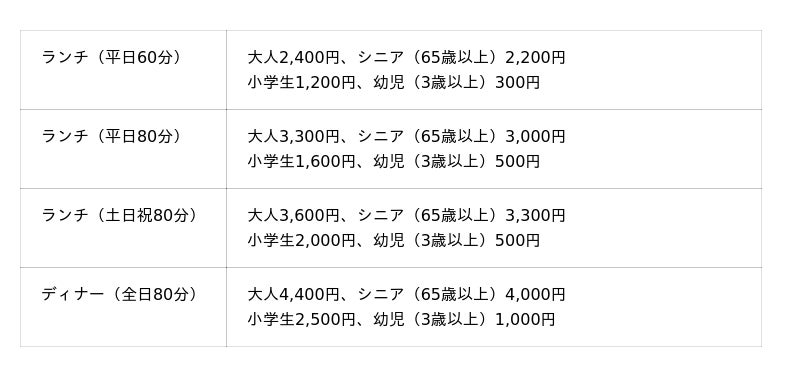 大人+600円、小学生+300円、未就学児・幼児 無料