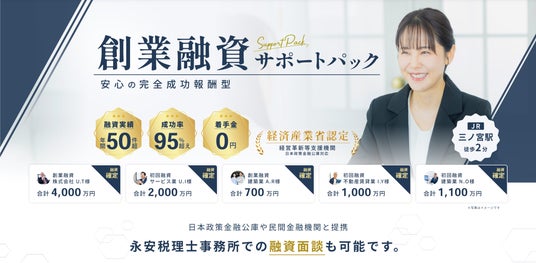 永安栄棟 公認会計士・税理士事務所は、こうした資金の壁を取り払うため、着手金0円、完全成功報酬型の「創業融資サポートパック」の提供を開始いたしました。