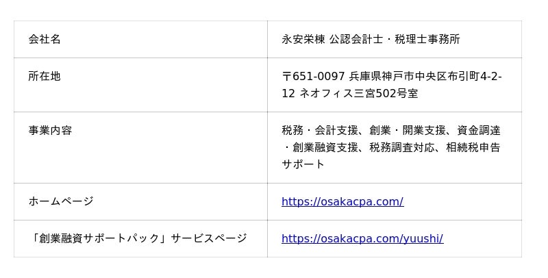 神戸を中心に税務・会計支援を行う永安栄棟 公認会計士・税理士事務所(所在地:兵庫県神戸市、代表:永安 栄棟)は、創業期の資金調達を支援する「創業融資サポートパック」の提供を2025年12月10日より提供開始いたしました。