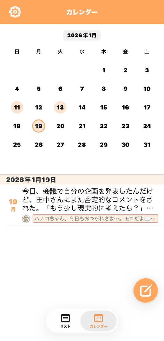 従来の日記アプリは「書いて終わり」でしたが、本アプリでは日記を書くとモコがその内容を読み取り、毎日の頑張りを褒めて励まし、悩みには具体的な行動プランやマインドセットを提案します。モコとの対話を通じて、自分自身の考えを整理し、新たな気づきを得ることができます。