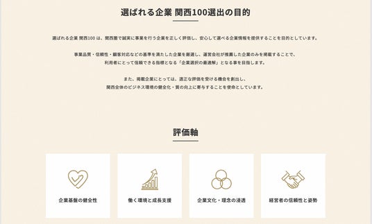 まだ多くの方に認知されていない「関西の優良企業」をできるだけ多くの方に知ってもらいたい! 4評価軸・40項目において高評価の関西優良企業100社をご紹介