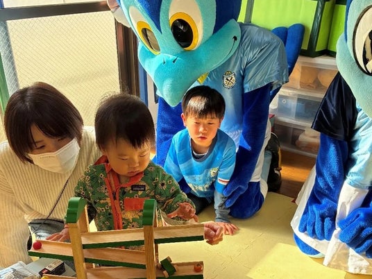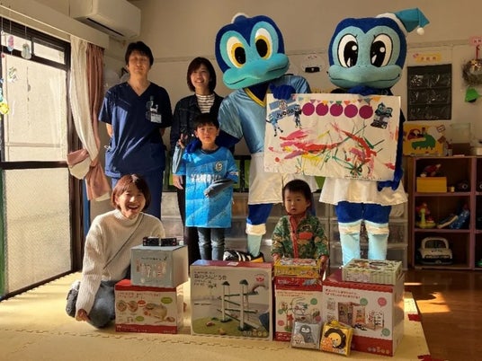 エド・インターが自社製品を保育園・養護施設さまへ寄贈する活動は「おもちゃでみんな笑顔になろう!」プロジェクトと題し、2021年11月より実施しています。このプロジェクトにご賛同いただいたジュビロ磐田さま・ジュビロ磐田選手会さまとの共同プロジェクトは、2023年11月に、静岡県にある聖隷浜松病院小児病棟へおもちゃを寄贈したことからスタートいたしました。