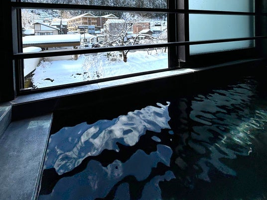 温泉半露天風呂付き客室<かわみ> スタイリッシュツイン【45平米/定員3名】(2023年リニューアル)~雪見風呂~(※天候により雪がない場合もございます)