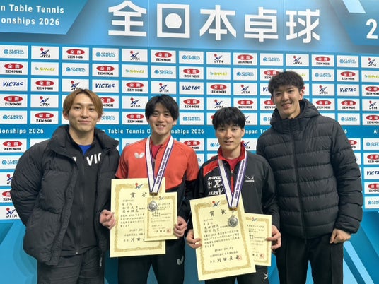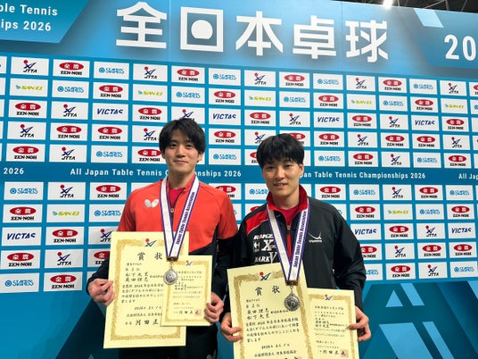 介護・保育・医療サービスを社員法人と連携して提供する社会福祉連携推進法人日の出医療福祉グループ(所在地:兵庫県加古川市、代表理事:大西奉文)の実業団卓球チームは、1月29日~2月1日に開催された「全農杯2026 年全日本卓球選手権大会(ダブルスの部)」において、英田理志・松下大星ペアが準優勝を果たしました。