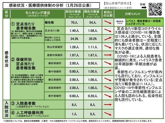 ・岡山県内の感染状況・医療提供体制の分析について(2026年1月19日現在)