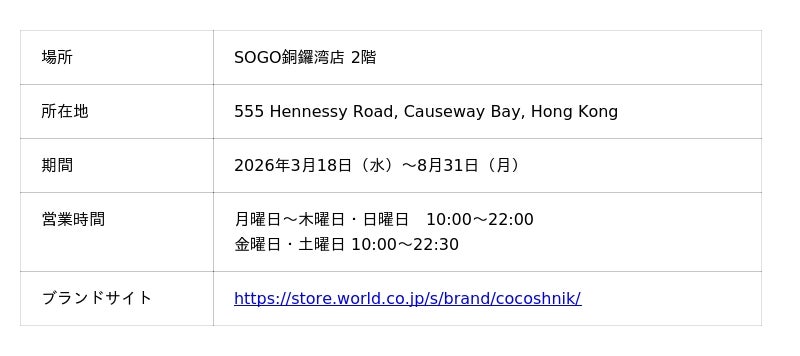 【ココシュニック ポップアップ概要】